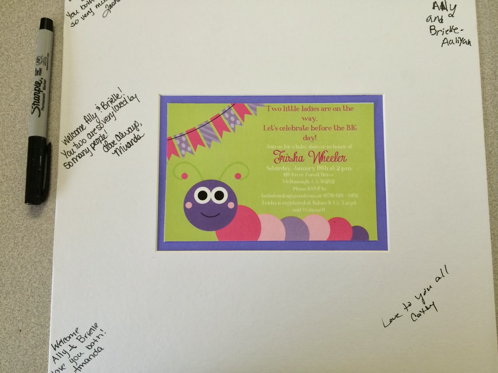 The next idea I loved was this keepsake invitation. All the shower guests signed the matte and then it was framed! What a great idea, right? It'll be a keepsake that both mom and the girls will treasure, I'm sure.
